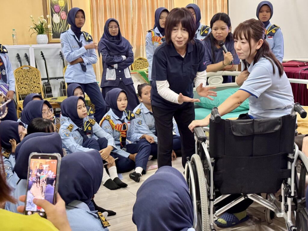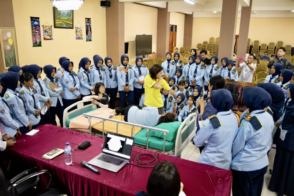 Liaisonは、日本の介護現場で培ったノウハウを「学べる形」に変換し、現場で使える教育を広げることを目指しており、インドネシアの高齢化に向けた対応への貢献と、特定技能制度等を通じて日本の介護現場で活躍されるインドネシア人介護人材の学習・定着支援を重要な目的として位置づけています。マンダラ・バクティ校とはこれまでも良好な関係性を築いており、日本・インドネシア両国の社会課題解決に向けた介護教育への取り組みを段階的に推進します。また、在宅介護等の研修コンテンツの制作は、NPO全国在宅リハビリテーションを考える会と協調して進めています(※下の写真、中央は同会の小山副理事長)。
